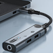 Experience the ultimate convenience and versatility with our U6 3-in-1 Type-C Audio Converter! Effortlessly connect your Type-C devices to any audio source with this compact and portable converter. Enjoy high-quality sound without compromising on functionality. Simplify your audio experience with the U6 3-in-1 Type-C Audio Converter.